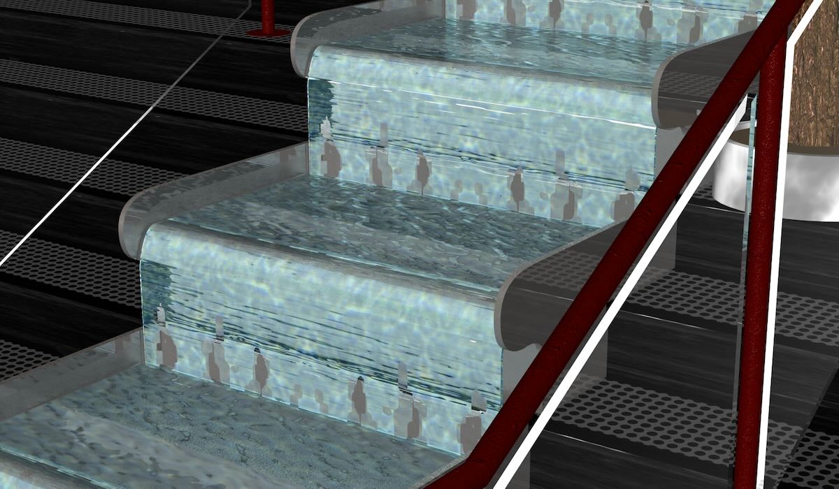 Eine riesengroße schwarze Treppenwand als Eingang zur Uni – das könnte doch etwas aufgelockert werden?!