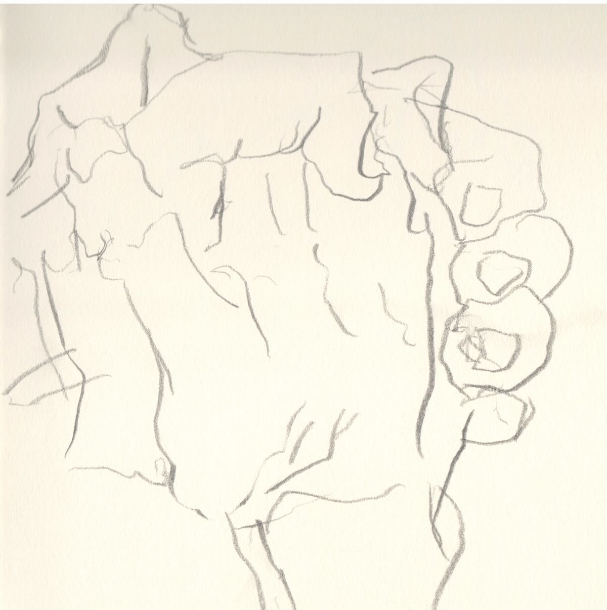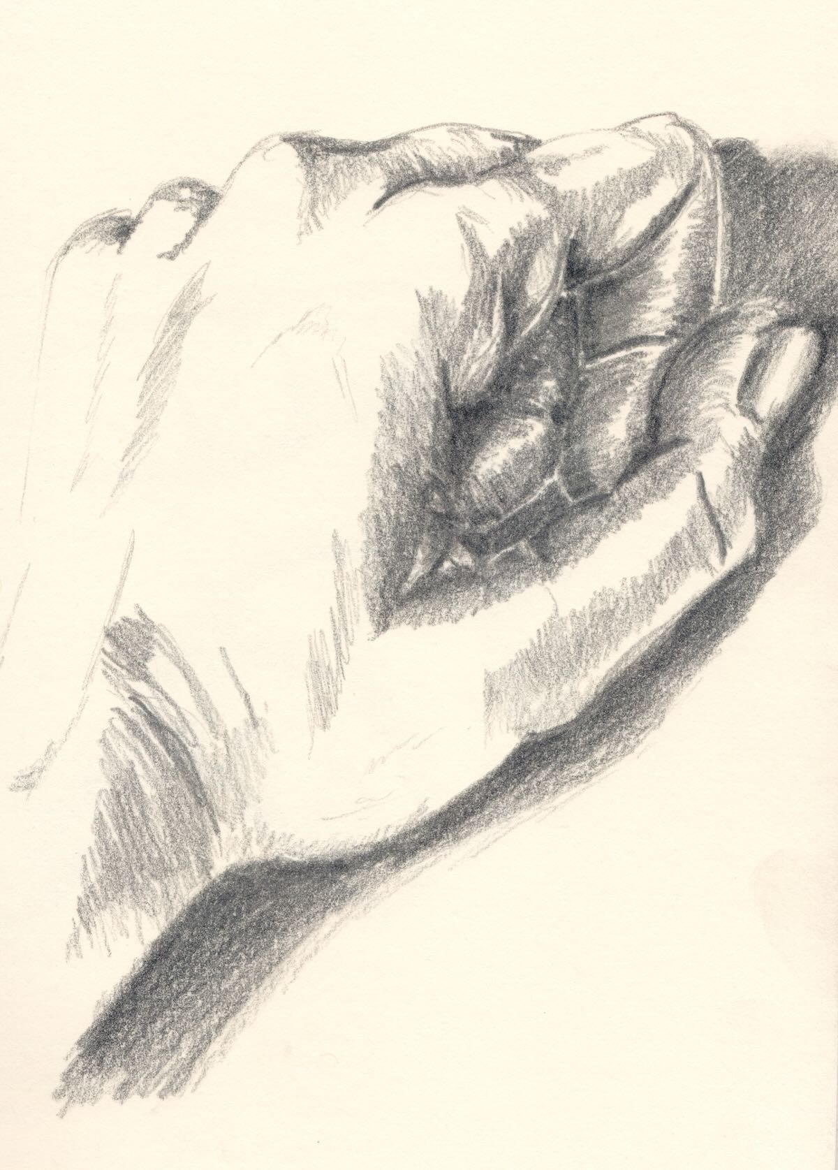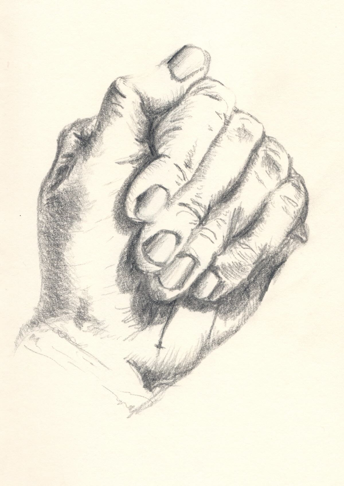 Meine Professorin sagte immer: Wer Hände zeichnen kann, kann alles zeichnen. Ich zeichnete zunächst mit rechts. Dann mit links. Aber wenn man beide Hände gleichzeitig zeichnen will, dann muss man sich etwas einfallen lassen: Mit dem Fuß geht es auch.